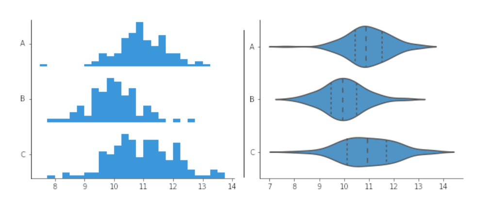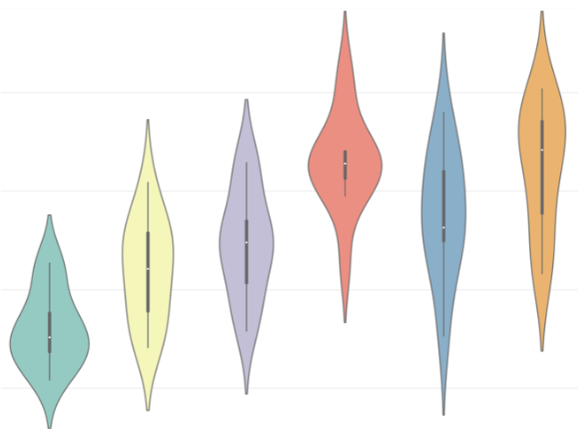 Combines components of a box plot and kernel density plot (similar to a histogram but shows the distribution as a continuous curve instead of with bars).