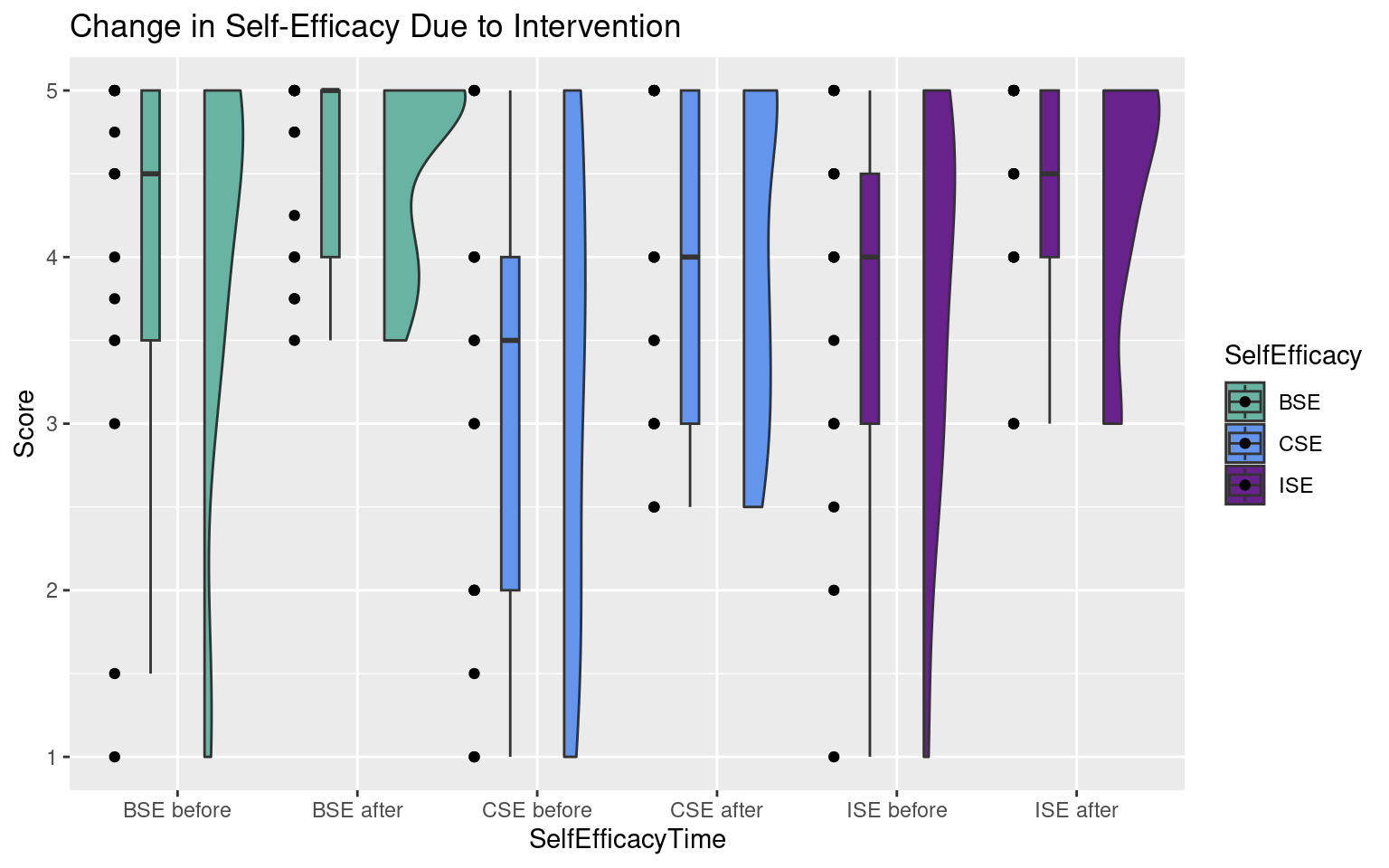 ggtitle("Change in Self-Efficacy Due to Intervention")